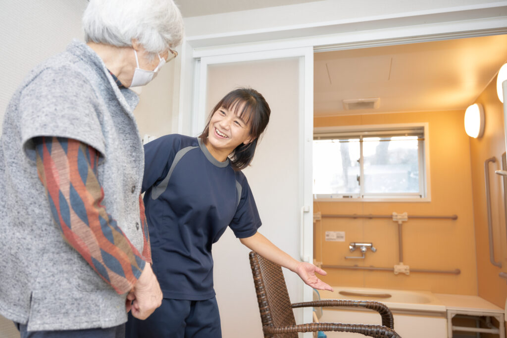 入浴介助は、ご入居者のお体の状態チェックも重要な仕事
