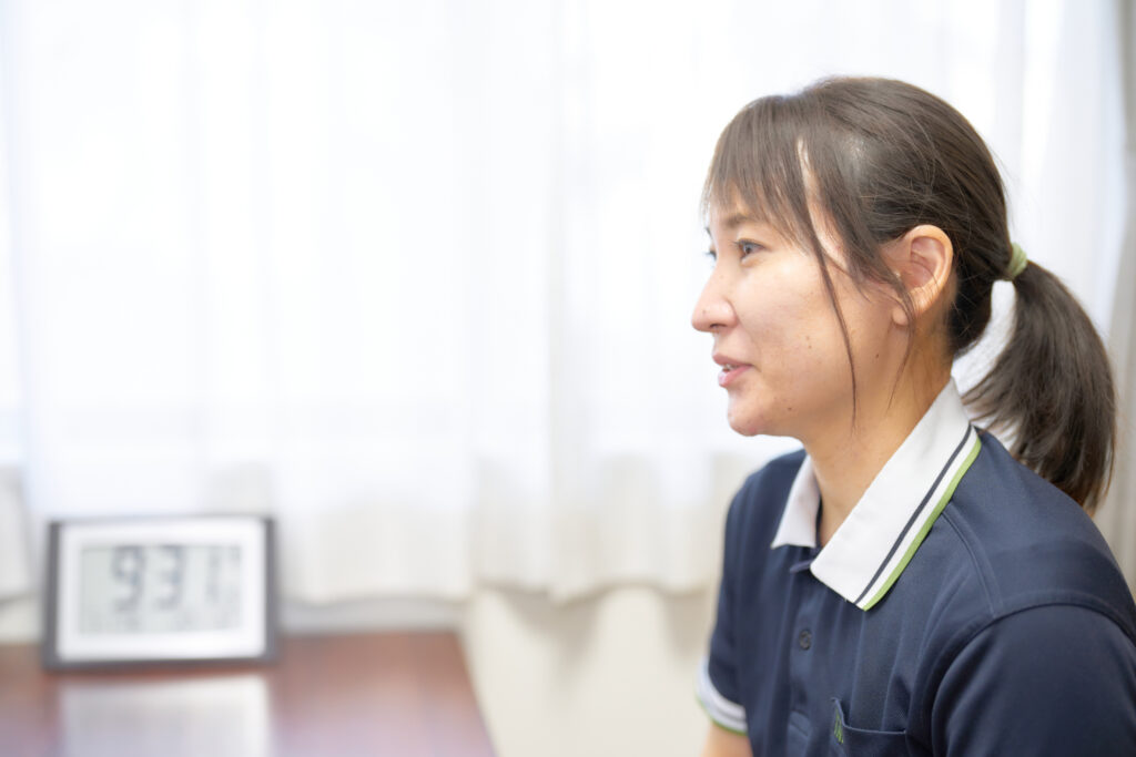 この仕事でのやりがいは、ご利用者が少しずつ心を開いて笑顔になってくれる変化に立ち会えることです。