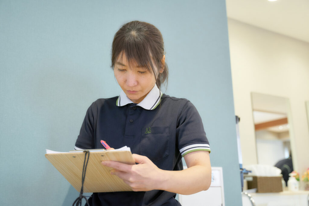 ご利用者の介護度や生活背景を事前にインプットしつつ、ショートステイ期間中の状態や気分の変化をお一人おひとり注意深く見極め、必要に応じて介助するよう心掛けています。