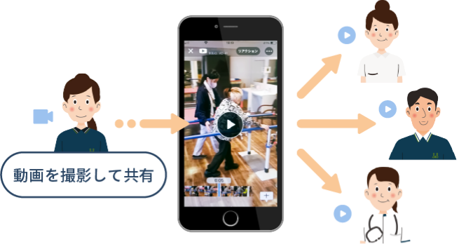 スマホを使った動画共有アプリ。日常的に動画を撮ることで、ご入居者の変化を見える化し、より精度・満足度の高い介護を可能にします。また、動画を通して意思疎通を図ることで、スタッフ間での情報連携が円滑化します。